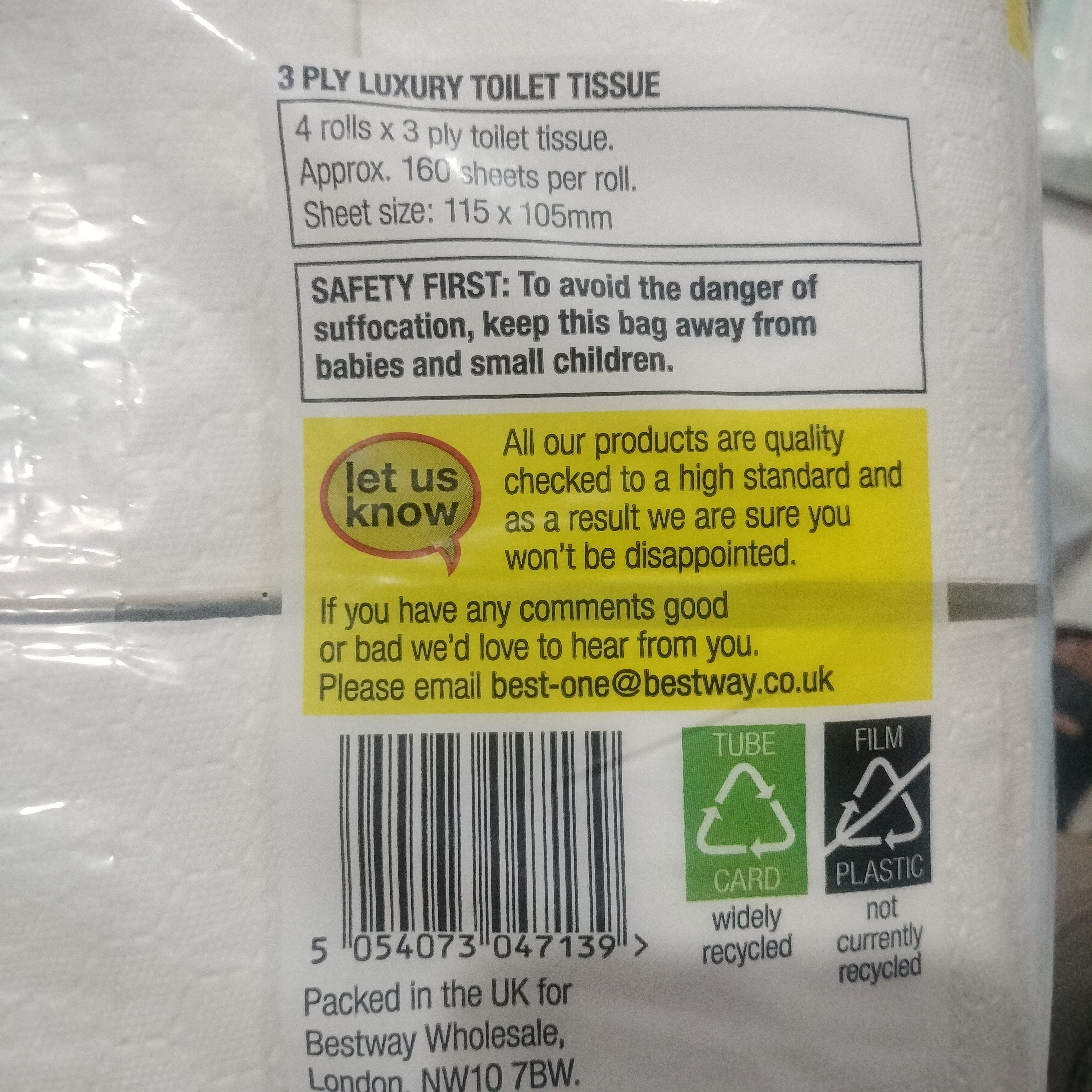 Upgrade your bathroom experience with Best One luxury toilet roll. Each pack contains 4 rolls of 3-ply...