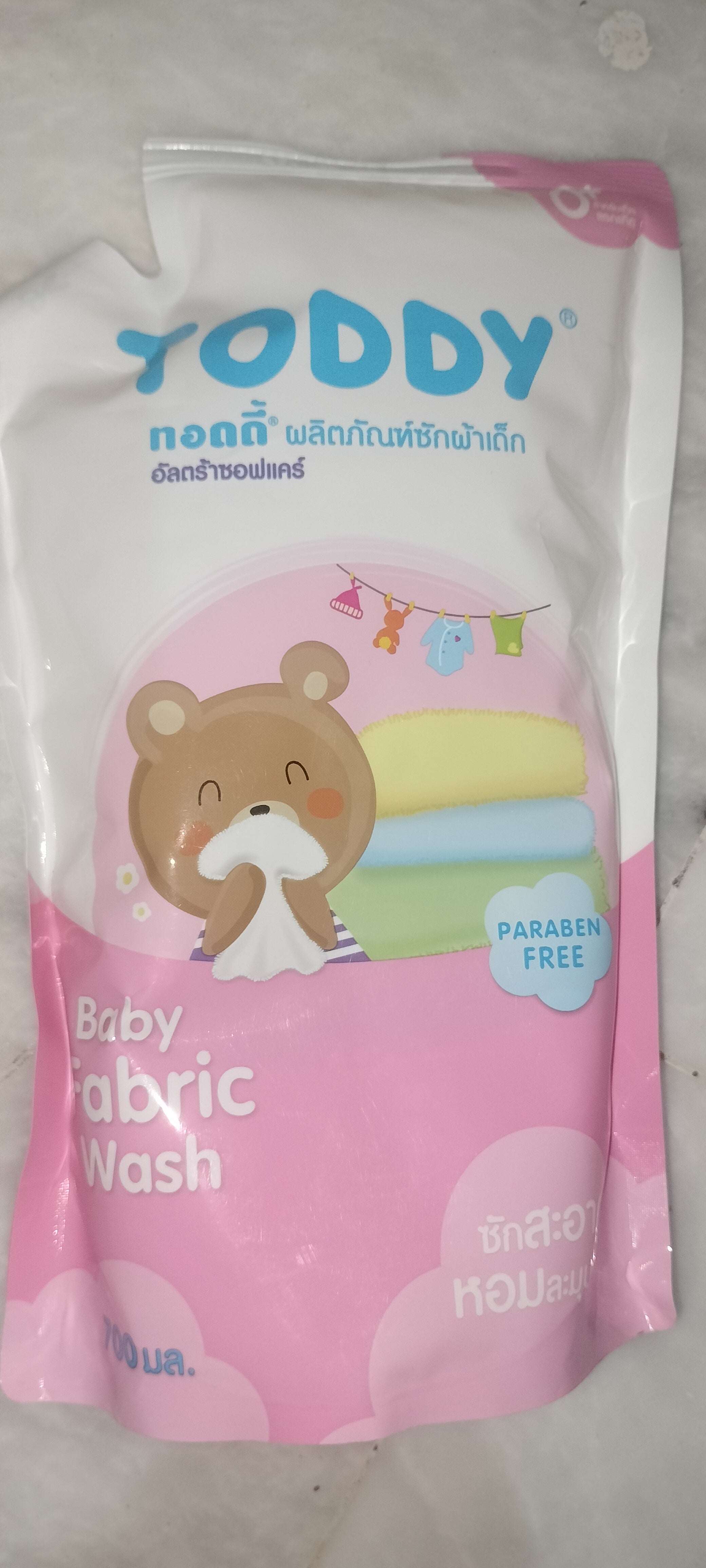 Toddy Baby Fabric Wash 700ml is formulated specifically for infants' fabrics, ensuring gentle yet effective cleaning. Manufactured in Thailand, this wash is designed to remove dirt and stains while maintaining the softness of baby clothing. The convenient pouch packaging allows for easy storage and precise dispensing.